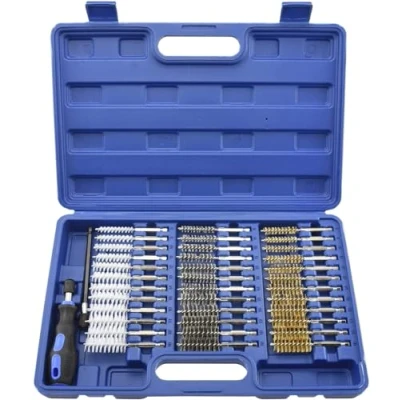 DRILL WIRE-BRUSH SET: Our set includes a variety of small wire brushes for cleaning rust, dirt, and corrosion from battery-terminal clamps, light sockets, and more. The 1/4-inch hex allows these brushes to be mounted on a power drill or die grinder. HEAVY-DUTY ERGONOMIC BRUSHES: The soft handle makes it easy to use our top-quality wire brushes without a power drill. These brushes provide a comfortable grip to help reduce hand fatigue, making them perfect for long cleaning sessions. LONG REACH BAR: This kit’s 6-inch quick-release handle makes an ideal extension piece to add to your reach. It’s perfect for accessing small, tight spaces or narrow gaps, so you can thoroughly clean even the most hard-to-reach parts. INCLUDED DRILL ACCESSORIES: Our set includes one 6-inch handle and 12 heads for each type of brush: stainless steel, brass, and nylon. The standard (SAE) brush sizes are from 5/16" to 3/4", and the metric (MM) brush sizes range from 8 mm to 19 mm. CONVENIENT STORAGE: Sturdy and precise, this 38-piece kit comes in a blow-molded plastic case for easy storage and travel. Ideal for automotive or electrical work, it’s a useful addition to home or professional tool collections., Weight: 3.64 pounds, Manufacturer: Ridgerock Tools Inc.