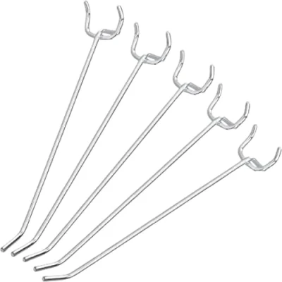 HANGING ORGANIZERS: These 1/8" hanging hooks fit all types of 1/4” peg boards with 1” spacing to organize and store a wide range of power, hand tools, household cleaning supplies, painting supplies, extension cords, retail product displays, tapestry hangers and much more. DURABLE: The peg board tool hooks are made of heavy duty hardened steel and provide maximum strength and longevity and can last for years with continued use. NICKEL-PLATED FINISH: The nickel plating is meant for a superior look and feel as well as promote reduced wear and tear on your hooks. EASY INSTALLATION: Each pegboard wall organizer kit can be utilized to arrange and rearrange hooks, add, or substitute to organize for your garage storage needs and more. VERSATILE: This organizer set can be used for the shop, garage, tool sheds, basements and much more. Line your pegboards along the walls or in any location to efficiently create room in your workspace or home., Weight: 2.5 Pounds, Manufacturer: Ridgerock Tools Inc.