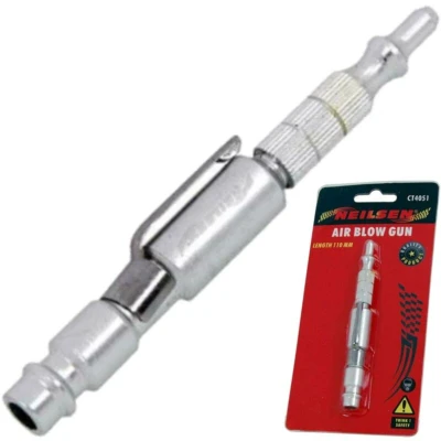 General description The Neilsen 110mm Mini Air Blow Gun is a compact and efficient tool designed for blowing dust and debris from hard-to-reach areas. Its adjustable blow feature allows for precise control, making it ideal for various cleaning tasks. Technical specifications Length: 110 mm Outer diameter of tip: 5.3 mm