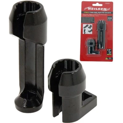 General description Neilsen 2pc 17mm Fuel Injector Sockets are designed specifically for the Ford Power Stroke 6.7L Diesel engines, including models F250 and F350. This specialized socket set facilitates the easy installation and removal of fuel injectors without causing damage to expensive components. Technical specifications Size: 17mm Type: 12 Point Drive: 3/8" Material: Cr-Mo Compatibility and accessories Application: FORD 6.7L Power Stroke diesel engine Complies with FORD TSB 11-10-10 Usage Depth stop design maintains proper socket height during use Thick mass construction reduces flex and prevents flare nut damage Crowfoot design allows for easy removal of various injector lines without damaging electrical connections Long socket provides the necessary clearance and linear shape for proper torque on fuel lines