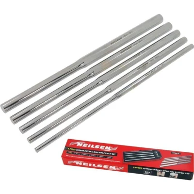Amazon5 Piece Set: Includes Ø8mm, Ø10mm, Ø12mm, Ø14mm and Ø16mm pin punches. 350mm Length: Extra-long 350mm design. CRV Construction: Manufactured from CRV material. Mirror Finish: Fully polished mirror finish. Applications & Storage: Suitable for commercial, industrial and agricultural applications; supplied in tetron wallet., Manufacturer: Neilsen