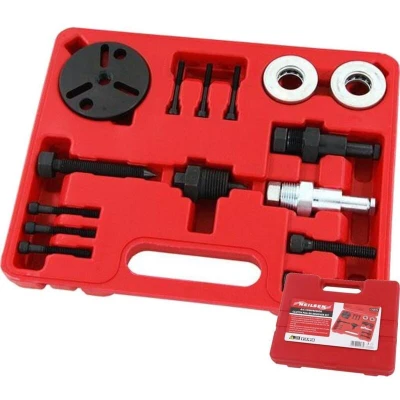 General description Neilsen Air Conditioning Compressor Clutch Removal Tool Kit A/C Set is designed for the removal and replacement of AC compressor clutches found in most makes and models of vehicles. This versatile kit includes a 2 and 3 hole puller plate, making it suitable for various compressor types. Technical specifications Includes 2 and 3 hole puller plate Compatible with FS6, C171, 6P, and 148 compressors Works with GM R4 and A6, HR-6, DA-6, and V A/C compressors Applicable for Sander compressors SD 505, 507, 575, 708, and 709 Compatibility and accessories Wide application for vehicles including GM, Ford, Chrysler, imports, and other makes and models Usage Removes, installs, or rebuilds clutches using mechanical force