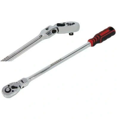 General description The Neilsen Extra Long Reach Flexi Head Socket Ratchet is a versatile tool designed for ease of use and efficiency. With its extra long length and flexi head, it allows for better access in tight spaces, making it an essential addition to any toolbox. Technical specifications Drive: 3/8" Square Drive Length: 457 mm Ratchet: 72 Teeth Material: Chrome Vanadium steel Finish: Fully polished mirror finish Features: Pear-head with flip reverse and push-button quick release Grip: Anti-slip comfort grip