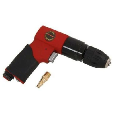General description The 3/8'' Air Drill features a keyless drive and is designed for heavy-duty use. It offers a reversible function, making it versatile for various applications. With a free speed of 1800 RPM and an air consumption of 6 CFM, this drill is efficient and powerful, suitable for both professional and DIY projects. Technical specifications Free Speed: 1800 RPM Air Consumption: 6 CFM Chuck Size: 3/8 - 10mm Air Pressure: 90 PSI Air Inlet: 1/4" Other information 1 Year Limited Warranty Style may vary