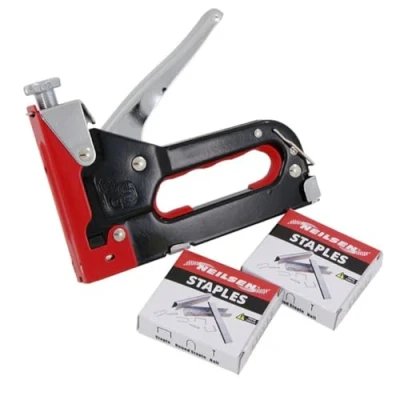 BUILD: STURDY STEEL GUN WITH IMPACT PRESSURE ADJUSTMENT LOCK FUNCTION: 3 IN 1 STAPLE GUN DESIGN COMPATIBILITY: SUITABLE FOR 4 - 14MM STAPLES COMPATIBILITY: SUITABLE FOR 10 - 12MM U STAPLES AND 10 - 14MM NAILS SUPPLIED: 200 X 12MM U STAPLES, 200 X 10MM NAILS, 200 X 8MM STAPLES, Weight: 1.82101828412 Pounds, Manufacturer: Neilsen