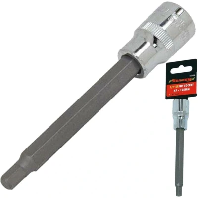 General description The Neilsen Long Reach 125mm Allen Hex Bit Socket is designed for 7mm brake calipers and features a 1/2 inch drive. Its extended length makes it ideal for accessing hard-to-reach areas in brake systems. Technical specifications Size: 7mm Length: 125mm Drive: 1/2 inch Material: Chrome vanadium steel