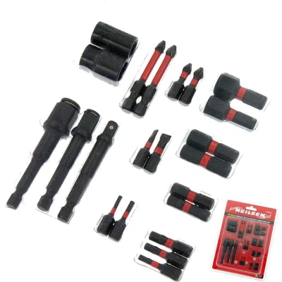General description Neilsen 22pc Impact Bit Set includes a comprehensive selection of screwdriver bits designed for use with impact drivers and drill drivers. This set is ideal for both professional and DIY applications, providing versatility and durability for various tasks. Technical specifications Number of pieces: 22 Types of bits included: Flat, Pozi, Hex