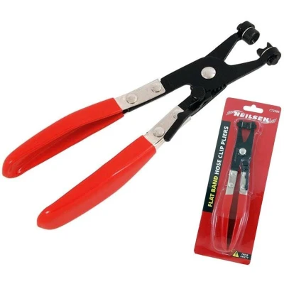 General description Neilsen Flat Band Hose Clip Pliers are designed for the efficient removal and installation of flat band hose clips. Featuring a swivel drive jaw, these pliers provide a secure grip and ease of use, making them an essential tool for automotive and mechanical applications.