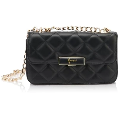 Faux leather shoulder bag With faux shearling trim Flap with magnetic closure Carrying strap with decorative chain links Main compartment with zip