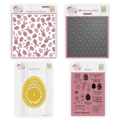 COMPLETE SET - Make creative spring and Easter designs for your scrapbook, bullet journal, cards and more with the Nellie’s Choice stencil, embossing folder, cutting dies and clear stamps CLEAR STAMPS - The silicone stamps are suitable for various paper types, but with the right ink also for wood, glass and more. They are compatible with a stamping platform or acrylic stamp block CREATE 3D DESIGNS - Give your papercrafts a unique 3D effect with the embossing folder. Create raised, detailed Easter patterns on paper to give your projects a spring look REUSABLE & EASY TO CLEAN - The stencils for painting are made from durable, reusable plastic. They can be cleaned easily with water and soap, ensuring long-lasting use for all your crafting projects CONTENT - This pack contains a stencil (5.9 x 5.9”), an embossing folder (5.9 x 5.9”), 3 cutting dies (between 2.8 x 3.9” and 3.3 x 4.5”) and 22 clear stamps (A6 packaging) for spring and Easter