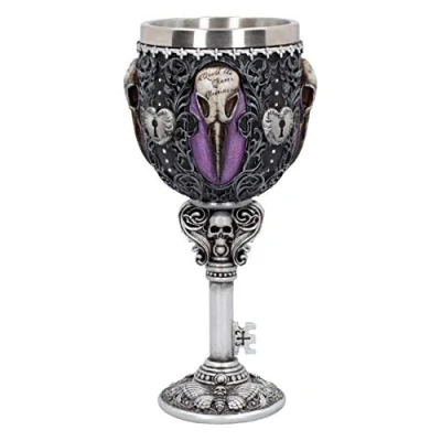 Nemesis Now B4725P9 Edgar's Raven Goblet 18cm, Resin w. Stainless Steel, Purple,silver