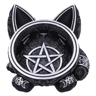 Black Cat Magic Trinket Bowl: Introducing Nemesis Now's enchanting Black Cat Trinket Tray, the perfect blend of mystery and elegance Exclusive Design: This bewitching tray is adorned with silver pentagrams and baroque patterns that add a touch of grandeur to this captivating piece Gothic Décor: This black cat tray is the perfect addition to your gothic home décor to hold your jewellery or other paraphernalia Cast in the Finest Resin & Expertly Hand-Painted: Crafted in the shape of a majestic black cat, this tray is cast in the finest resin and expertly hand-painted Cats: With exclusively designed pieces from Nemesis Now's own design team and figurines from magical artist Lisa Parker, there are tonnes of tantalising tabbies to get your claws on