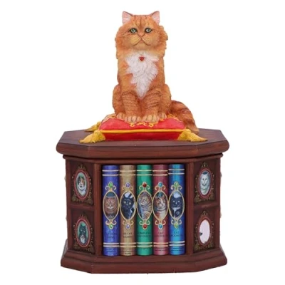 Lisa Parker Mad About Cats Trinket Box: Embrace the whimsical world of Lisa Parker and surrender to the irresistible allure of her "Mad About Cats" trinket box, a delightful creation from Nemesis Now Lisa Parker Home Decor: From the magical imagination of Lisa Parker, his exquisite piece invites you to indulge in the playful antics of a mischievous ginger cat, perched atop an antiqued bookcase with an unabashed air of feline curiosity Inspired By 'Mad About Cats' Artwork: Embrace the feline allure of "Mad About Cats" and let its enchanting presence grace your space with a hint of playful magic Box For Storing Small Accessories: The lid of the box lifts off to reveal a small compartment ideal for storing small trinkets Cast in the Finest Resin & Expertly Hand-Painted: Meticulously crafted with impeccable attention to detail, the ornate bookcase conceals a hidden compartment, its lid lifting to reveal a secret sanctuary for your most cherished trinkets and treasures Lisa Parker: Lisa Parker has captivated collectors around the world with her best-selling artworks featuring animals with a magical twist