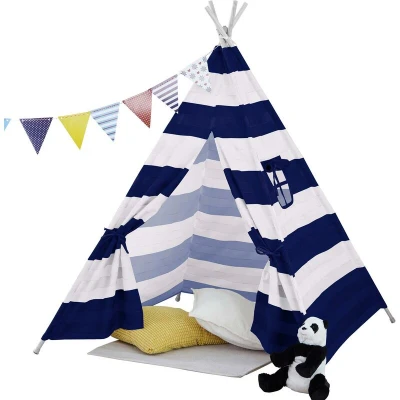 Neo Large Canvas Children Indian Tent TeePee Kids Wigwam Indoor Outdoor Playhouse (Navy Striped)
