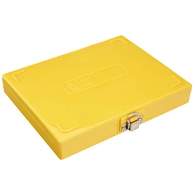 Box for 100 slides 76 x 26 mm, with lid clip. No damage - thanks to cork inlay on base, with folding hinge. Index directory in the lid, stackable. Storage type: trays/boxes. Lid / fastener type: Folding closure/cover