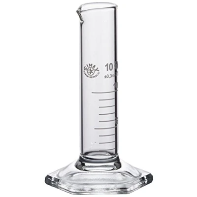 neoLab E 1275 10 ml measuring cylinder, short, hexagonal base, borosilicate class B, pack of 2