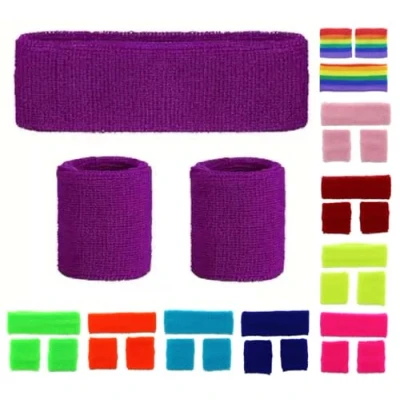 NEON Headband and Wristbands Sweatbands Set (Purple)