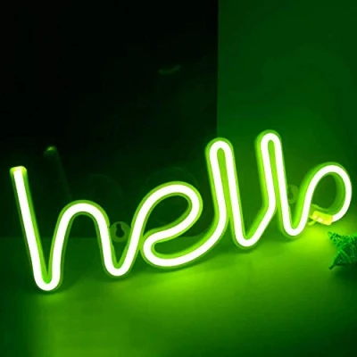 Neon Night Light, LED Signs Light Hello Lights for Kids Bedroom Battery USB Operated (Green)