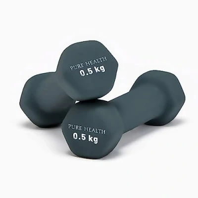 Neoprene Dumbbell Hand Weights Pair Home Exercise for Women Men Arm Pilates Dumbbells in 1kg 1.5kg 2kg 3kg 4kg 5kg 8kg 10kg Set (0.5kg, Pair) Grey