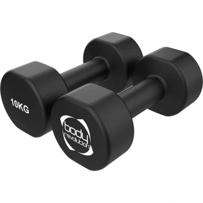 Step up your fitness game with this set of 2 x 10kg neoprene dumbbells. They are the perfect addition to any fitness routine, offering both functionality and style for home and gym use. Designed to support a wide range of workouts, from light strength training to aerobic endurance exercises, they provide a reliable way to build strength, improve fitness, and enhance overall performance. Their compact size and durable construction make them suitable for beginners as well as more experienced fitness enthusiasts who want to incorporate lighter weights into their training sessions. Crafted from sturdy cast iron and coated with a protective neoprene layer, these dumbbells are built to withstand repeated use while protecting both your hands and your floors. The neoprene coating provides a soft, rubberised texture that enhances grip, prevents slipping, and makes your workouts safer and more comfortable. Thanks to their anti-roll, flat-bottom design, they stay put when placed on the floor,