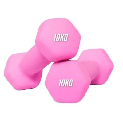 Neoprene Dumbbells Weights Iron Hand Pair Aerobic Workout Fitness Home Gym Comfortable To Hold and Soft on Floors Excellent Accessories For Toning Strength Workouts (Pink, 10Kg Pair)