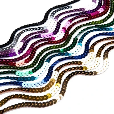 Stunning Sequins for Cocktail Eveningwear, Costumes & Indian Sari, Salwar Kameez Attire For Crafts and Home Décor, Fabric Base Applique Embroidery Our Strung Sequin Ribbon comes in 13 gorgeous classic and fashion colours for every purpose Sequins which don’t scratch easily, washable and meet EEC standards. View our amazon storefront before checkout to see the most exclusive and extensive collection of Ribbons, Indian Trimmings collection, Garment accessories and our UK made RIB fabrics and Knitted Jerseys.