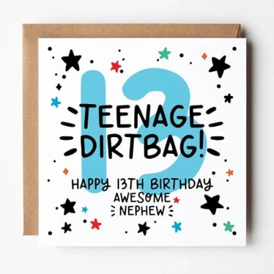 Nephew 13th Birthday Card Teenager for Cute & Trendy Design Blank Inside With Kraft Envelope (Age 13 (Teenage Dirtbag!)