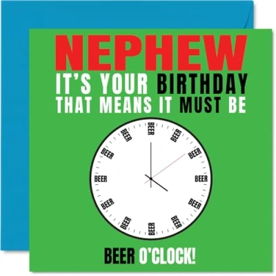 Nephew Birthday Card Beer o Clock Happy for from Auntie Uncle, 145mm Novelty Bday Greeting Cards