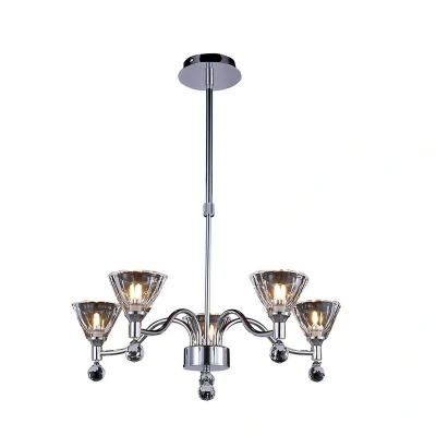 A range of impressive Polished Chrome arms finished of with an Optical Prism Glass cup and lead crystal ball. The neat telescopic rod allows the fittings to be reduced and used on lower ceilings, All Items are supplied with Luxram G9 Lamps. Another collection of Quality products from Diyas.