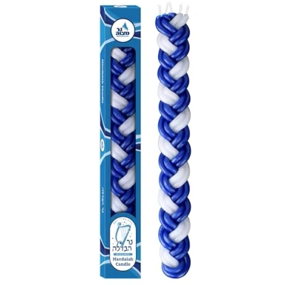 Ner Mitzvah Braided Havdalah Candle Flat Blue and White Paraffin Wax Shabbat Judaica Gift