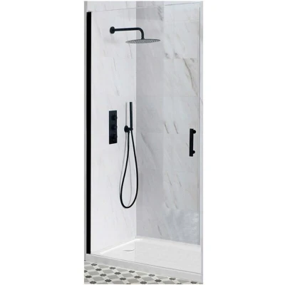 General description Accentuate the stylish look of your bathroom with the Milano Nero Black Walk In Wet Room Hinged Door Shower Enclosure. This enclosure features a reversible design and comes with a slimline white shower tray, providing both functionality and elegance. Technical specifications Dimensions: 1000mm x 1000mm Door height: 1950mm Entry width: 917mm Material: 6mm toughened safety glass and matte black aluminium profile Tray material: Acrylic capped polymer resin Compatibility and accessories Designed for installation in recessed bathroom areas Includes a fast flow waste for efficient drainage Installation Hinged design allows for easy access to the enclosure Please refer to the line drawing for waste position Usage Utilises a magnetic seal for secure watertight closure Other information Manufactured to EN14428 and EN12150-2 standards This product is covered for 10 years