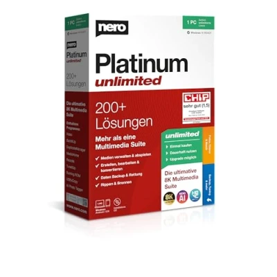 Nero Platinum Unlimited Retail Box with CD Video Editing Manage & Play Media Artificial Intelligence 8K Photos Music PC Tuning Windows 11 / 10 8 7