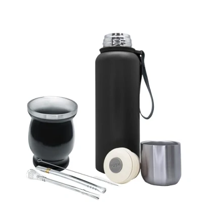 MATTE ALL-IN-ONE KIT: Includes everything you need to enjoy the mate: 1 stainless steel thermo cup (250ml), 2 steel bulbs with advanced filter and 1 thermos flask of 750 ml. NON-SLIP AND ERGONOMIC DESIGN: Tumbler with stable base that prevents spills + thermos with foldable handle for easy carrying. Safety and comfort in every use! PREMIUM AND SAFE MATERIALS: 100% food grade stainless steel, free of BPA and metallic flavors. Rust and shock resistant for durability. ADVANCED FILTER BULBS - Includes 2 steel bulbs with micro-perforations that block herbs and sediment. Includes cleaning brush for hygienic maintenance. PORTABLE ALL TERRAIN DESIGN: Thermos with lid that serves as a glass cup. Perfect for travel, camping or office use.