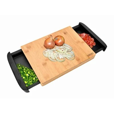 Nerthus FIH 332 Bamboo cutting board that includes 2 removables drawers