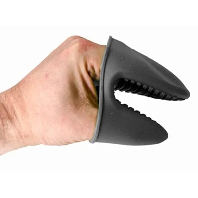 Heat resistant oven glove, highly useful for regular cooking, roasts or when carrying oven trays. Manufactured in high-quality, healthy and heat resistant silicone to protect your hands from burns. Mini design, easy to use and carry, especially for camping or barbecues. The internal part of the glove, which comes into contact with the utensils, comes with grooves which allow a firm grip. Includes a cutaway in the side section for easy storage, or simply store in a kitchen drawer as it hardly takes up any space. Suitable both for left-handed and right-handed persons, comes in grey colour.