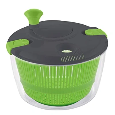 GET IT FASTER AND EASIER: Combined with a powerful twist mechanism, it takes seconds to dry green leaf fruits and vegetables. The salad spinner with extended swivel handle contributes to effortless operation allows you to enjoy the ease of washing and drying vegetables and fruits. REDUCE CLEANING PROBLEMS - Less pieces make the salad spinner easy to clean. You can wash the salad dryer with water in just a few seconds. In addition, it is dishwasher safe. FABULOUS DESIGN - The salad spinner is made of BPA-free material that meets food standards. Equipped with a 360° rubber ring at the bottom, the lettuce spinner grips the countertop and prevents wobbling when in use. NOT JUST A TYPE - It is suitable for many types of vegetables and fruits such as leaf vegetables, tomatoes, kale, herbs, apples, grapes, etc. You can enjoy crispy and fresh salad at home anytime with this salad dryer. Consists of a clear bowl, a slotted basket and a tight lid, well constructed, sturdy and stable.