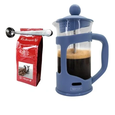 NERTHUS French Coffee Pot Set 350 ml Blue + Spoon Clamp