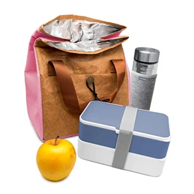NERTHUS Thermal Bag with Tyvek Design Kraft and Detail Pink, Metal, 24 x 14 cm