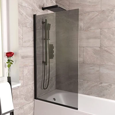 AmazonSwing bath screen Reversible for left or right-hand fitting Stunning matt black profile with grey tinted tempered glass for a modern look 5mm clear toughened safety tempered glass Glass itself is tinted during manufacture and is not a cheap covering that will peal, Weight: 2.20462262 Pounds, Manufacturer: Nes Home