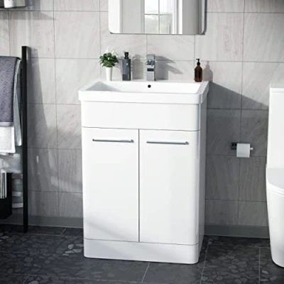 Spacious Design: This 600mm freestanding vanity unit and wash basin offers ample storage and washing space, perfect for cloakrooms and bathrooms. High-Quality Materials: Constructed with water-resistant 16mm Grade A MDF and a high white gloss finish, providing durability and style. Premium Hardware: Features polished chrome stainless steel handles and a ceramic basin with one tap hole, ensuring longevity and elegance. Contemporary Style: The mirrored door style and square design add a modern touch to your bathroom, perfect for any decor. Easy Installation: Freestanding installation type, with floor mount and minimal assembly required, making it simple to set up.