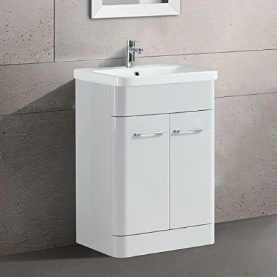 Nes Home Freestanding White Gloss Vanity Sink Unit Bathroom Furniture 600mm Modern Doors Ceramic Basin