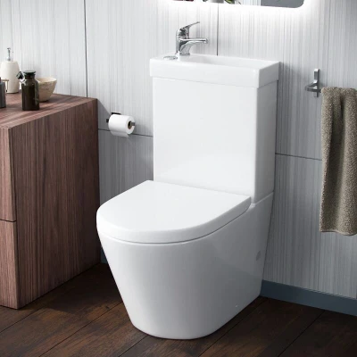 Key Features Finished In Gloss White D Shaped Pan Includes Toilet Seat Ideal For Small Spaces And Cloakrooms Space-Saving Design With Integrated Basin Fully Back To Wall Design Specifications Height: 790mm Width: 385mm Projection: 610mm Basin Projection: 145mm Toilet Type: Close Coupled Finish: High Gloss Glaze White Finish Material: Ceramic Seat Type: Soft Close Cistern: 3/6 Litre Dual Flush (Allowing Either a Light Or Full Flush) Sizing: Uk Standard Size Tap Features Diffuser fitted in the spout for non-splashing spray Ceramic Cartridge Highly polished 3 layer PVD chrome finish Durable and solid brass construction UK standard size fitting Suitable Water Systems: Subject to a minimum pressure of 1.0 bar Combination boiler systems Gravity-fed systems (only with a pump) MegaFlow systems Pumped hot water systems Un-vented hot water systems Standard pressurised hot water cylinder type systems Package Contents Toilet Pan Cistern Tap Waste