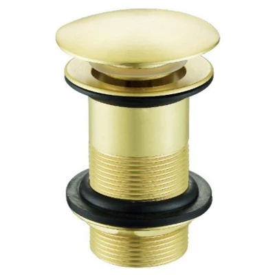 General description The Push Button Unslotted Basin Waste Sprung in Brushed Brass features a universal standard size and a high-quality brass body with a brushed finish. It is designed for basins without overflow and operates by pushing the spring-loaded pop-up waste mechanism. Technical specifications Finish: High Quality Brushed Brass Material: Brass Mechanism: Click clack pop-up Package Contents 1 x Basin Waste