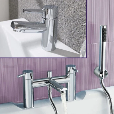 General description Contemporary Round Bridge Deck Mounted Bath Shower Mixer with Handset and Basin Single Lever Mixer Tap Set features a stylish design that enhances any bathroom decor. It combines functionality with exceptional build quality and finish, ensuring a reliable and elegant addition to your home. Technical specifications Diffuser fitted in the spout for non-splashing spray Ceramic Cartridge for lifetime drip-free performance Highly polished 3-layer PVD mirror chrome finish Durable solid brass construction UK standard size fitting - 3/4" BSP inlet connection Minimum pressure: 0.5 bar Maximum pressure: 16 bar (Recommended pressure: 1.0 bar) Compatibility and accessories Suitable for Combi-boilers Compatible with Gravity Fed systems Works with High pressure systems Package includes: 1 x Basin Mixer Tap, 1 x ABS Handheld Shower and wall bracket, 1 x Bath Shower Mixer Tap fittings
