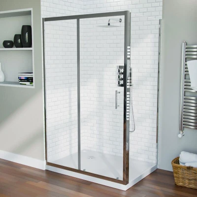 Key Features 1200mm sliding door and 760mm frameless glass side panel High-quality construction for durability and longevity Contemporary and sleek design for a modern bathroom Smooth sliding mechanism for easy access Frameless glass side panel for a spacious feel Provides a watertight seal to prevent leaks Easy to clean and maintain Compatible with various shower enclosures Stylish and elegant appearance Tempered glass for safety and durability Adjustable installation for flexibility Sliding Door Specifications Width: 1150-1190mm Height: 1850 mm Concealed design sliding shower enclosure cubicle door The sliding door is manufactured from 6 mm toughened tempered safety glass Highly durable and easy to clean glass coating Dazzling chrome finish profile Strong build push release double rollers for smooth operation Quick release door system, easy removable wheels for easy cleaning High quality stylish stainless-steel handles, polished chrome finish Quality finish ensuring long term