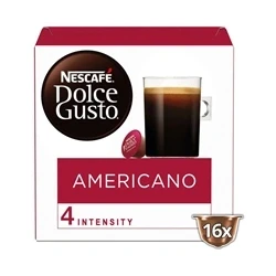 Americano coffee pods. Intensity of 4 out of 11. Blended South American coffee beans from Columbia and Brazil. For use with Dolce Gusto professional quality coffee machines. Hermetically sealed pods preserve coffee freshness.