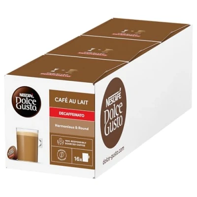 NESCAFE Dolce Gusto Cafe au Lait Decaf Coffee Pods total of 48 Capsules Decaffeinated (3 Packs)