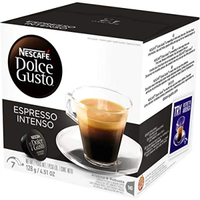 Intense Flavor: Experience a rich, medium-dark roast with fruity and spicy aromas, a smooth body, and generous velvety crema Convenient Packaging: Comes in a box of 16 capsules, perfect for enjoying multiple cups of intense espresso Nutritional Information: Low in carbohydrates and sugars, with 17.1g of fat per 100g as sold Easy to Use: Compatible with Dolce Gusto machines, simply insert a capsule and follow the machine's instructions for espresso drinks Sustainable Choice: Store in a cool, dry place away from direct sunlight and strong odors to maintain freshness and reduce waste