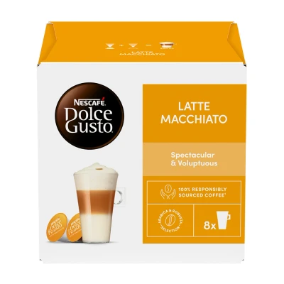EurofficeNescafe DG Gusto Latte Macchia Pk 48. Nescafe Dolce Gusto Latte Macchiato Capsules Pack of 48 112416323. Capsules for use with Dolce Gusto coffee machines. Exceptional taste in seconds. Spectacular and voluptuous. Pack of 48 (3x16).