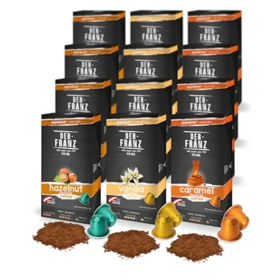 Nespresso Compatible Coffee Capsules, 12 x 10 Capsules (40 Hazelnut aroma, 40 Vanilla Caramel aroma)